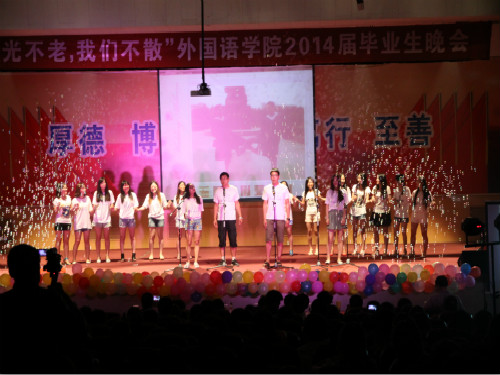 化茧成蝶,勇敢前行。歌舞《所谓爱》、英语1005班合唱串烧、毕业视频《我们毕业了》一一精彩呈现,而学院领导、老师以及楼管阿姨们对毕业生们的真诚祝福与殷殷希冀令现场暖意融融,毕业生代表发表感言时一度哽咽,“愿‘厚德 博学 笃行 至善’这母校的谆谆教诲陪伴毕业生们披荆斩棘,一路前行!”