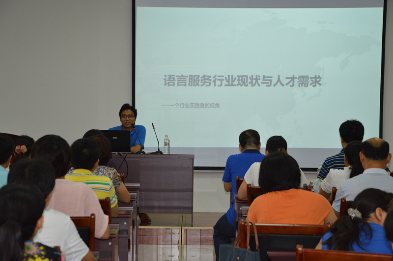聘任仪式结束后,王志涛做了题为“语言服务行业现状与人才需求”的学术报告会,分析了中国与全球语言服务行业的现状,近几年尤其是金融危机以来的发展趋势,面临的问题与挑战,阐释了行业人才尤其是大学毕业生的需求变化;建议人才培养应集中于项目管理人员、营销人才、英文写作人才、同时掌握语言和技术的人才、快速学习能力与主动学习能力很强的人才、能够协助企业参与全球范围竞争的人才等。