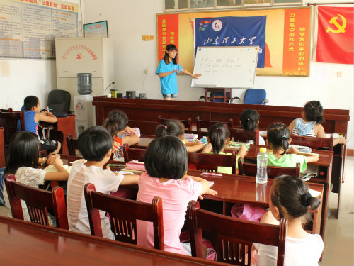 为走近包括留守儿童在内的青少年群体,凭借专业技能丰富农村教育资源,并与留守儿童共度欢乐暑假,7月17日,“心系微尘”11名志愿者组成的爱心支教服务队来到了周村区白寨村,为那里的留守儿童带去了一种别开生面的精彩课堂。