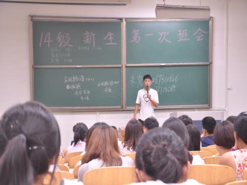 新学期,新起点!9月7日晚,学院于4号教学楼303、305教室召开14级新生第一次班会。14级辅导员朱岩及全体14级新生参加此次班会。