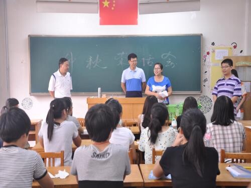 “老师中秋节快乐!”学院领导、老师每走进一间教室,都会接收到同学们真挚的节日祝福。鉴于多数同学初次离家,曹晓媛提到,要尽快适应大学生的身份,学会独立、互关互爱,充分融入班集体生活中。卢彦峰以学会做人为切入点,他指出,外院是一个大家庭,作为家中的一份子,每个人都要学会包容与帮助;与此同时,卢彦峰祝愿新生大学这个舞台谱出自己的别样青春。谈及学习,他强调教师在学生成长道路上的重要性,并为大家介绍班级导师的相关内容。导师们教学资历丰富,平易近人,他们或内敛或开朗,相互自我介绍后,不久便与同学们聊学习,聊生活,场面其乐融融。