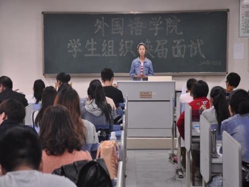 9月20日下午,我院于8号教学楼112、114教室举行学生会、社团联合会换届会议。我院团总支书记曹晓媛、辅导员蒋育忻及学生会和社团联合会主席团成员担任此次换届面试的评委。