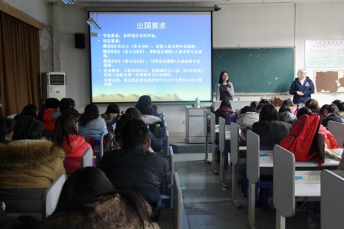 作为外语学习者,出国是目前部分学生考虑及忧心的问题。为此,学院特于12月4日下午举办威尔士大学教授见面会。威尔士三一圣大卫学校教授Bethan Brown及该校硕士研究生、学院优秀教师张蕾受邀作为主讲人,全面细致地向同学们介绍了该校校史文化、留学优势及各项出国细节。曾在该学校有过留学经验的吴迪向同学们分享她的海外学习经历及收获,在场学生表示真正懂得了出国对自己学业的重要意义;部分同学坦言,以前出国是考虑,现在出国是方向,将会根据自身情况确立长远发展目标。