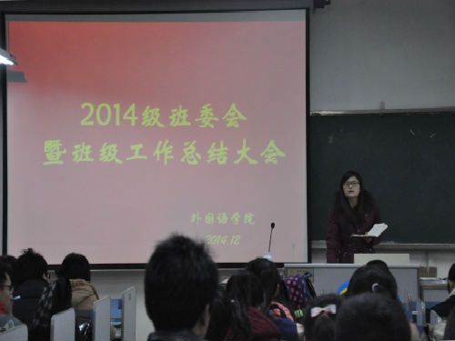 期末将至,为反思总结该学期年级学习、活动及各班级文化建设成果及williamhill开展情况,12月11日晚,学院2014级班委会暨班级工作总结会议于8号教学楼216教室举行。辅导员朱岩主持会议,14级各班级班委参加此次会议。