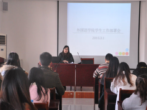 会上,吴鹏简要介绍会议流程后,对新学期学生返校统计、课前准备、卫生工作、请假制度及辅导员分时段办公等多个方面进行具体要求与指导,并就毕业班考研情况及实习安排进行讲解。接下来,曹晓媛针对学院具体实际情况,结合学校应用型人才培养要求,部署新学期学生工作。她首先对该院筹建的外国语言服务中心等重点建设项目及其发展规划进行简介,并就新学期将要开展的外语文化节、大型志愿服务活动、学生外出参观学习及校外人员来访等工作进行讲解,希望通过切实的实践机会来提高学生学以致用的能力及社会竞争力,以培养出全球化背景下的应用型外语人才。此外,她强调新学期的williamhill应主要放在加强优良学风建设和队伍建设上面。学生干部应提高工作效率,端正态度,注重工作细节,严于律己;以服务同学为己任,提高自身能力与自身素质,做好服务工作。