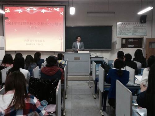4月20日晚,我院2015年第一期入党积极分子培训开班仪式于8号教学楼112教室举行。学院党总支书记李义勇、辅导员朱岩及各支部入党积极分子参加此次开班仪式。