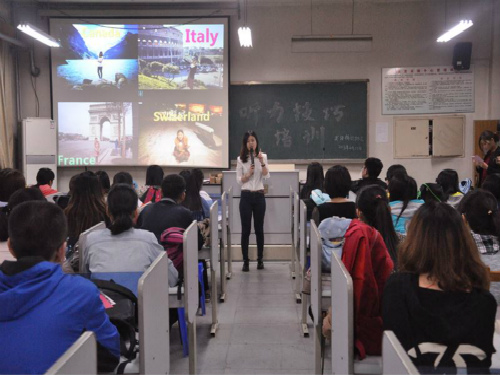 首先,她介绍自身丰富的人生阅历及工作经验,凭借个人的出国经历说明英语听力的重要性。她表示,听力是大多数学生难以突破的难关,而听力又是英语学习不可忽视的重要组成部分,以此表明掌握基本的听力技巧紧迫性。接着,她从专业的角度讲解听力三大原则——应对考试的遗憾原则、语气语调原则、第二重心原则;阐释听力技巧的可靠性、灵活性,以更好地加强建立在听力技巧基础上的听力实力;要求改掉从听到形再到义的听力习惯,养成从听直接到义的转化习惯。最后,她对学生日常的听力练习作出两点要求,一是坚持听写,扩充单词量;二是养成良好的晨读习惯,并对现场提问一一进行解答。
