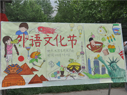 学院根据外语文化节“感受海外文化魅力,提高外语应用能力”活动主旨,结合欧美、日韩著名地标建筑、特色美食绘制大型宣传海报,并制成展板轮流展放于学院门厅、餐厅及公寓楼门口。逼真的手绘美食图片令人垂涎欲滴,自由女神像、金字塔等标志性建筑物彰显异域文化风情,吸引无数同学驻足观看。
