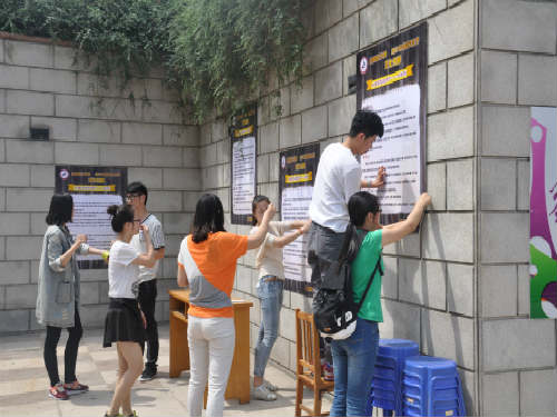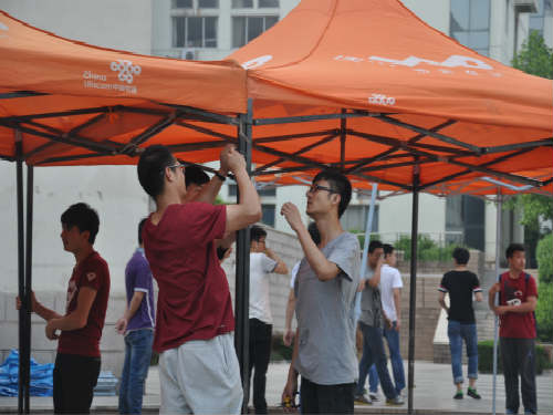 早在这个本可以尽情酣睡的清晨,负责会场布置的志愿者们就集合在学院为各项事宜奔波,搬桌椅、支帐篷、贴海报,匆匆来去甚至没有时间用早餐。文化节在他们的安排下有序地进行着。