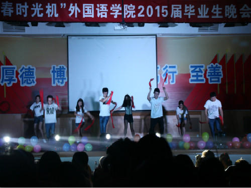 《你被写在我的歌里》《一个像夏天一个像秋天》等歌曲满载喜怒哀乐,倾诉同学间的情谊;《舞蹈串烧》集结各种元素,从机械舞、千手观音到《小苹果》、《Nobody》,点燃现场气氛,欢呼声此起彼伏;而舞台剧《那些年那些事》则将团课进行到底,以“实践归来话成就”为主线,辅以幽默的故事和夸张的表演,再次将晚会推向高潮。“老师,我想跟您聊聊天”主题课间要求毕业生们根据教师寄语的音频进行听音识人,并通过有奖竞答的方式调动现场气氛,同学们均跃跃欲试,乐在其中。