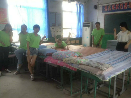 4个多小时的车程过后,我们来到了李家户镇中心小学,这里的教室便是我们的临时宿舍。像那些刚睁开眼睛看世界的小鸟一样,我们对这里的生活充满着好奇,相互之间讨论个不停。聊天之余,我们开始清理宿舍、安置行李、熟悉环境……我们的团队互爱互助,我们的工作井然有序。