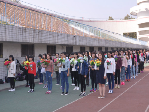 赛前准备工作可谓异彩纷呈,其中参与运动会开幕式的表演队:教职工广播体操、健美操、花束队、方阵队等都在争分夺秒高效训练。