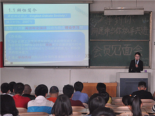 为给同学们提供一个外语学习交流平台,及时了解会员对英语学习的需求,10月17日下午,英语辩论协会与翻译协会于4号教学楼205教室举行会员见面会。见面会由英语辩论协会相关负责人主持,同学们踊跃参与。