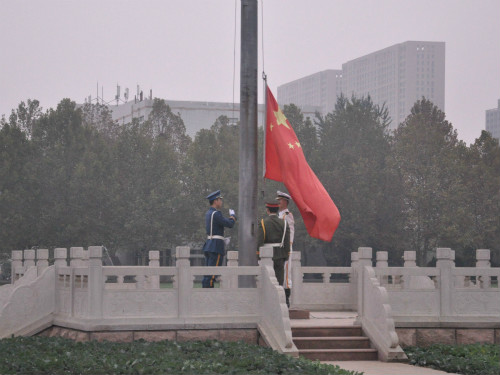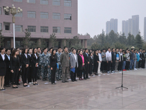 秋风飒飒,晨曦初染,10月19日清晨,由我院负责开展的我校第七周升国旗仪式于鸿远楼前广场举行。学院党总支书记李义勇,团总支书记、学生科科长曹晓媛及我院、交通与车辆工程学院、机械工程学院、农业工程与食品科学学院等七个学院的全体2015级同学参加升旗仪式。