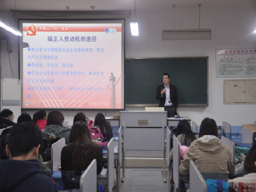接下来,刘兴清从为什么要入党,我们能为党做什么出发,结合我校优秀共产党员先进事迹和当前国内形势,引导学生在实践中发挥党员先锋模范带头作用。