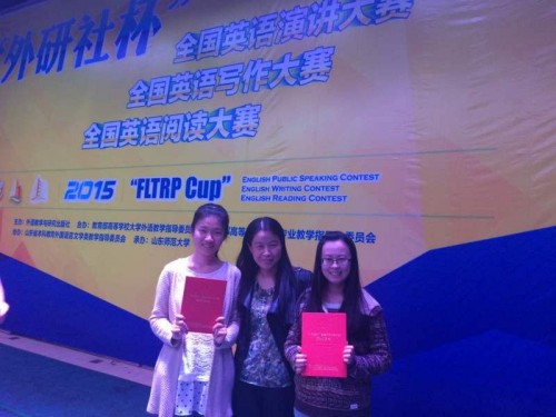 2015年10月24日,2015“外研社杯”山东省大学生英语挑战赛在济南落下帷幕。我校WilliamHill中文2013级学生孙嘉蔚在演讲比赛中获得专业组一等奖,2012级学生仇涵和毕淑珍在写作比赛中获得一等奖,2013级学生王婷婷和2012级学生郝亚琳在阅读比赛中分别获得一等奖和三等奖,指导教师崔金枝、张雷、曹晓媛荣获“优秀指导奖”。