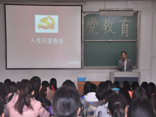 会议伊始,李义勇从共产党现状和历史演变、当代大学生为什么加入中国共产党及怎样加入共产党三个方面展开叙述。首先,他从入党动机着手,向同学们介绍利益型、信仰型、荣耀型等动机,教育同学们要正确树立入党观念,坚定政治信仰,提高自身知识、能力、素质修养;其次,就同学们关心的怎样入党问题,他通过PPT等形式做了全面介绍,鼓励同学们要勇敢地表达入党愿望,积极发挥作用,提高理论修养,注重自我更新,主动接受考验,最终做到以自身实际行动争取入党。会议上,他反复强调思想观念上的认知:入党是一件庄严而又神圣的事情,摒弃自私自利思想,主张集体为先观念;最后,他希望同学们大学期间严格要求自己,树立正确的世界观、人生观、价值观,踊跃递交入党申请书,争取早日成为一名光荣的中国共产党党员。