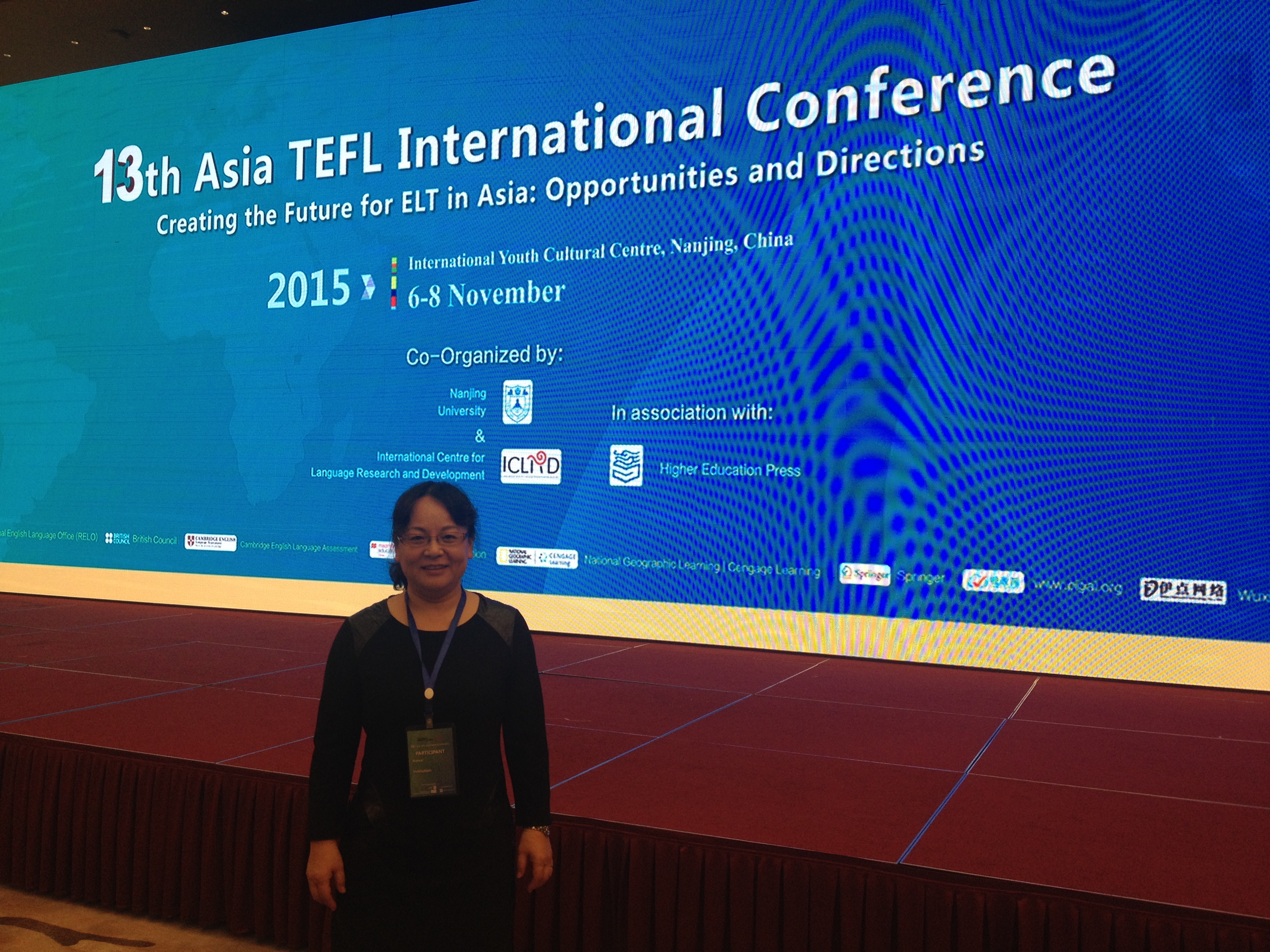 2015年11月6日至8日,我院教师岳红丽赴南京参加了“第十三届亚洲英语教师协会国际研讨会(13th Asia TEFL International Conference)”。本次大会主题为“开创亚洲英语教学的未来:机遇与方向”,就教育与语言规划、课程设计、语言习得、数字化素养、测试与评价、翻转课堂教学、微格教学与课程、教师教育与发展、亚洲英语能力框架与标准等主题进行了探讨。会议由南京大学和国际语言研究与发展中心共同承办,700余名来自世界各地的代表参加了大会。