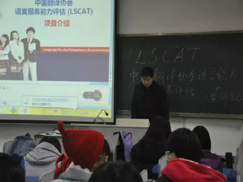 为适应新经济下国家对翻译人员的需求,中国翻译协会启动LSCAT项目以针对行业人才进行综合培养。从实际出发,由我院学习部主办的中国翻译协会语言服务能力评估(LSCAT)讲座于12月1日下午在8号教学楼216教室举行。LSCAT专业指导老师孟现朋担任主讲,各年级同学积极到场听讲。