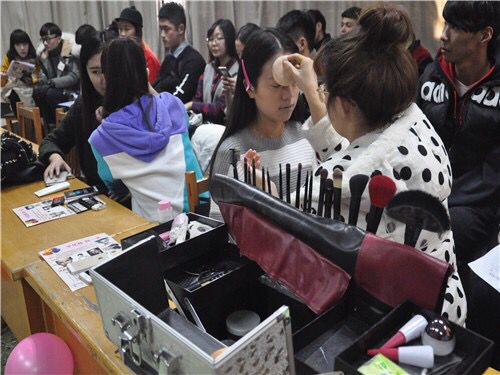 比赛开始,选手们准备就绪,分别以水仙子、校园风、童年等为主题,运用精妙的化妆技巧为其模特上妆。唯美的妆容或清新自然、或古朴典雅、或高贵冷艳,惟妙惟肖,栩栩如生。其勾勒出的细致眼线,鲜艳的眼影晕染充分展现了选手们高超的化妆技术。比赛期间,嘉宾们精彩的歌曲、舞蹈表演带动现场气氛。专业化妆师现场普及化妆知识,使在座女生受益匪浅。