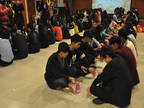 精彩节目中穿插游戏互动环节,随着一个个大奖被抽走,现场欢呼声此起彼伏。晚会最后,由我院宣传中心和自律委带来的杯子舞震撼登场,七十人配合默契,动作与音乐鼓点完美结合,晚会于美妙的打击乐中完满落幕。
