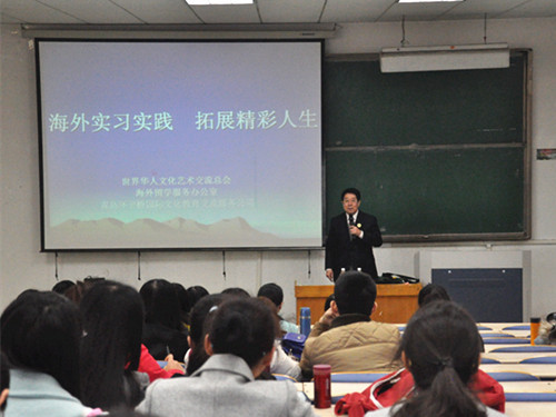 楚成东以“海外实习实践,拓展精彩人生”为主线展开此次讲座。他结合自身经历围绕外语就业形势及人才就业现状进行了深入讲解,表示在校大学生在打好基础同时应注重社会实践,充分锻炼自身能力。同时,他讲到,“学以致用”是未来就业最理想状态,但当今社会“学非所用”情况也较多,学生要学会分析自身短处和长处,转变就业观念。他向同学们提出几点建议,态度决定一切,同学们对待工作应认真负责、脚踏实地,更要善于处理人际关系。楚成东以提问方式带动现场气氛,提醒同学们要勇于展现自己,做到出类拔萃、志气合一。