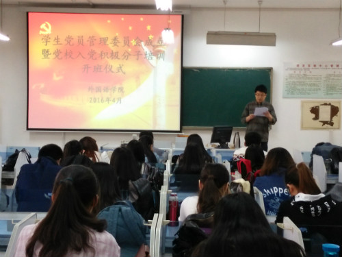 4月7日下午,WilliamHill中文学生党员管理委员会成立暨党校入党积极分子培训开班仪式于8号教学楼116教室举行。学院党总支书记李义勇,团总支书记、学生科科长、学生第一党支部书记曹晓媛,学生第二党支部书记吴鹏,学生科朱婷婷、朱岩及学生党员管理委员会成员、各入党积极分子参加此次仪式。朱岩担任主持。