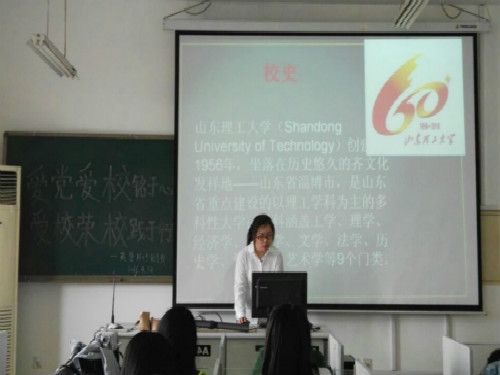 结合专业,突出创新。为切实做好最美的时光遇见你——“爱校荣校”系列主题团日活动相关工作,各团支部和宣传中心在辅导员朱岩的带动指导下,结合专业特色,积极创新主题教育活动形式和内容,以建校六十周年为背景,开展“爱校荣校”主题演讲、校史知识竞答、筹拍微电影献礼学校六十华诞。4月28日,通过主题团课开展“爱校荣校”主题演讲、校史知识竞答活动;自4月22开始筹备的电影以“走过我来时的路”为主线,通过今昔对比,展现六十年间学校的快速发展和日益繁荣。五个团支部积极参与微电影的筹备工作,认真查找资料,回顾建校历史、发展历程及现状;采访相关校友了解学校往昔繁荣景象,真正将爱校情怀转化为荣校行动,极大地调动了同学们的参与热情,电影中突出学生外语学习背景,将校庆宣传标语的中、英、日、韩版融入其中,并着重介绍学校鸿远楼、图书馆、大学生艺术广场、稷下湖等标志性建筑景观,5月3日下午,电影的后期剪辑工作全部结束,至此,这部完全由学生自编自导自演及自己制作的献礼学校六十华诞的微电影正式完成。