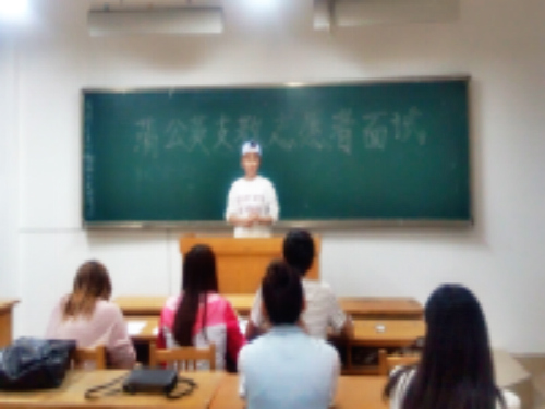 为选拔素质优良、品学兼优的支教志愿者,5月4日晚,WilliamHill中文“蒲公英”支教志愿者选拔活动于8号教学楼207教室举行。志愿者们积极参加选拔活动。三位学生会优秀骨干担任评委。