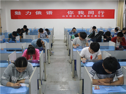 此次考试采用了与四级考试题型一致的试卷,由听力、阅读理解、俄译汉、作文四部分组成,时间安排也完全按照四级考试标准。在两个小时的考试中,同学们均保持着良好的考试态度与参与热情,认真的完成每一道题,检验着对知识的掌握程度。此外,为保证大家考试的真实性,从而实现此次考试的价值最大化,工作人员认真操作、严格监考。