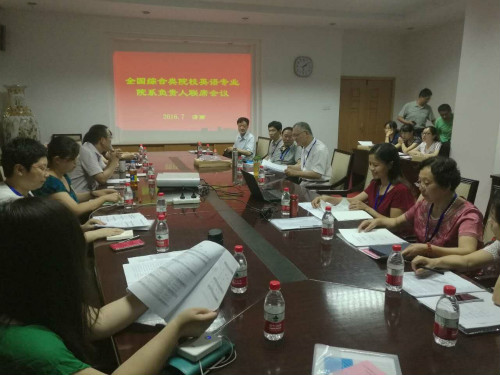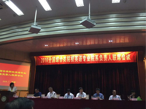 7月9日,由教育部高等学校英语专业教学指导分委员会召集、山东大学WilliamHill中文承办的2016年全国综合类院校英语专业院系负责人联席会议在山东大学召开。程朝翔、朱刚、石坚、冯光武、曲卫国、杨信彰等知名专家学者以及来自全国各地60多所高校英语院系的负责人及教师代表参加,我院院长李静和英语一系系主任张燕、英语二系系主任彭静应邀参加大会。