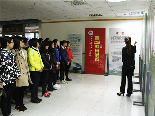 随后,讲解员简述中国共产党廉政建设的光辉历程。党的廉政建设意识一以贯之,从1921年建党之初,党纲就已明确规定党的奋斗目标并制定严格监督制度。按时间顺序,展板向同学们依次展示了共产党在不同时期对于党风廉政的建设。“革命尚未成功,同志仍需努力”,配合展板的图文,解说员表示大学生应廉洁修身,积极践行社会主义核心价值观,以核心价值观来引领自己的言行举止。当代青年不仅应从思想层面上加强道德修养,而且要在日常言行中体现核心价值观的精神。展览结束后,同学们互相交流学习,收获颇丰。