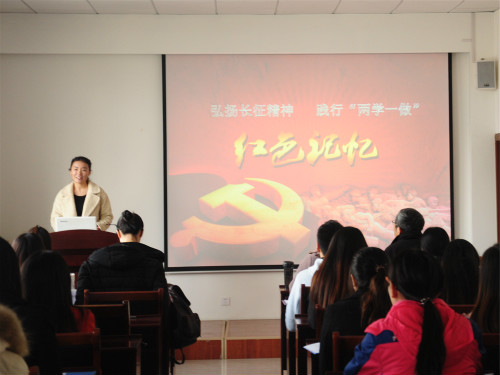 为献礼党代会,提高党员素质,当天下午,学院学生支部“弘扬长征精神,拼搏永不停息”主题教育活动于8号教学楼418室举行,将“两学一做”学习教育活动引向深入。校党委组织部正处级专职组织员王文峰出席。