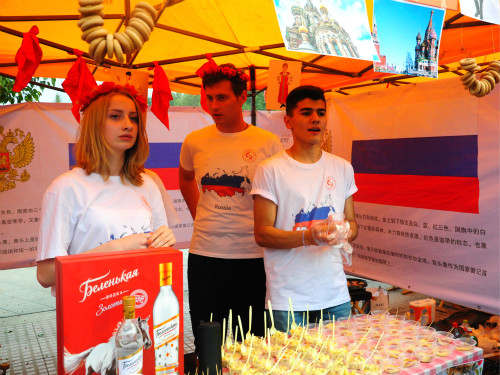 表演者充分展现自己国家的迷人风采,日本系学生展出自制的寿司、挂出绯句猜谜,韩语系学生拿出烤炉现场烤肉,而英语系学生则摆出国旗形状的蛋糕与插有国旗的水果沙拉供人品尝,也门学生给来参观的同学彩绘也门国旗图案。