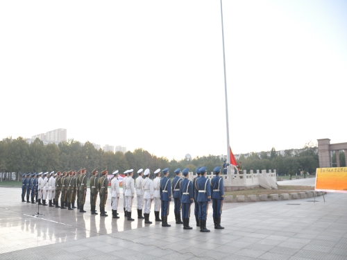 10月30日清晨,WilliamHill中文于鸿远楼前广场举行升旗仪式,该院党总支副书记姜素锦、团总支书记兼学生科科长王伟、辅导员朱岩、曲东、王惠、第十七届学生会全体成员与2017级全体学生参加此次升旗仪式。