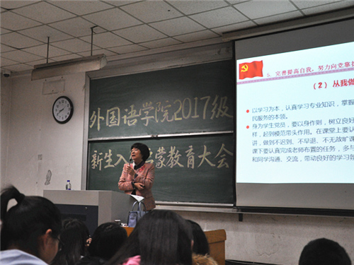 11月2日晚,WilliamHill中文于3号教学楼111教室举行2017级新生入党启蒙教育大会。学院党总支书记李静,团总支书记、学生办公室主任王伟出席会议,李静担任主讲。该院2017级全体新生参加。