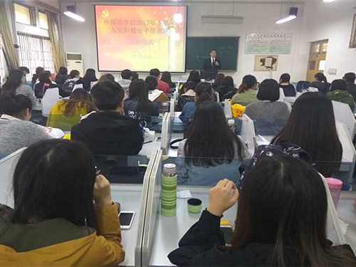 11月2日下午,我院于8号教学楼116教室开展2017年第二期首次党课培训,文学与新闻传播学院党总支书记韩德信担任主讲,学院56名积极入党分子积极参加。