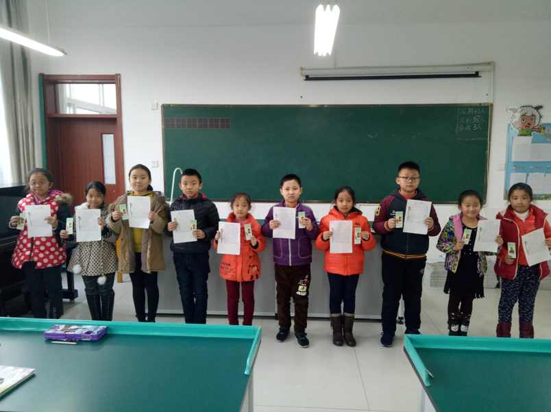 这是我们班学生进行写字比赛,写的好的学生我给他们发过级卡,拍照留念。