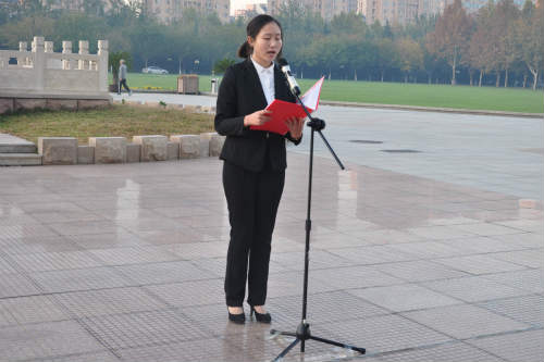 紧接着,王伟进行国旗下讲话。他讲到,全校上下按照“一精神一规划”的指导要求,认真贯彻落实校党委“五有人才”培养目标,大学生要勇敢肩负起时代赋予的责任,在此,他对学院全体学生提出三点新要求和希望:第一是要坚定理想信念,中国梦是全国各族人民的共同理想,也是大学生一代应该牢记树立的远大理想;第二是要掌握过硬本领,青年的素质和本领直接影响着实现中国梦的进程;第三是具备健康的身心,学生不仅要努力学习,而且还要掌握实践技能,不断提高与时代发展和事业要求相适应的素质和能力。坚持学以致用,勇于实践,努力成为祖国和社会的栋梁之材。