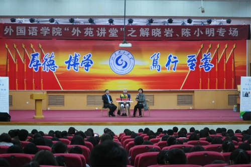 报告会开始前,解晓岩、陈小明、李静和王明新共同为“外苑讲堂”活动揭牌。随后,姜素锦简要介绍“外苑讲坛”标志的寓意与内涵,并表达学院对广大外院学子的希冀,希望其充分牢记“内外兼修、中西贯通”的院训,全面汲取中华优秀传统文化的营养,启迪创新思维、开拓国际视野,将来能够更好地借助语言媒介,在的新时代的国际舞台、外语环境中讲好中国故事、传播中国声音,向世界展示令人瞩目的中国智慧和中国力量!