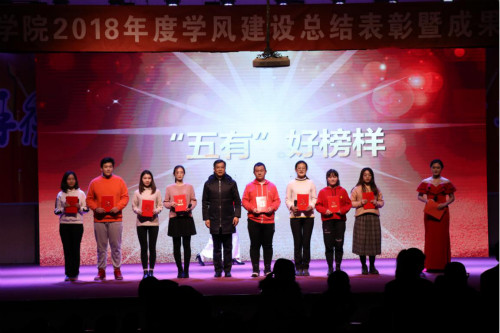 12月25日晚,“凝心·尚学·逐梦——我院2018年度学风建设总结表彰暨成果展示大会”于三号教学楼报告厅举行。校党委常委、副校长张祥云,蓝海国际教育集团理事长鲁晓宁,学校有关部门负责人、WilliamHill中文领导班子成员及各系室负责人、师生代表400余人参加大会。