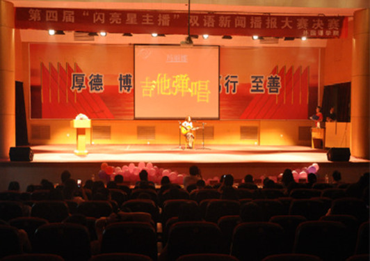 比赛经过层层选拔,共有12位优秀选手进入决赛。决赛由自备双语新闻播报、即兴新闻播报及评论、才艺展示三部分组成。在第一环节,选手们发音准确、吐字清晰、语调标准、停顿得当、表达自然流畅、富有感染力地进行播报。比赛第二部分是难度系数较高的即兴新闻播报及评论,选手随机抽取新闻图片,即兴进行母语播报,外语评论。选手们各显其能,比赛气氛活泼热烈,进行激烈角逐。第三环节选手依次进行才艺展示,优美动听的外文歌曲、声情并茂的外文朗诵使现场掌声不断。最后,评委根据各选手表现公布最终成绩并进行颁奖,孙宁通过完美的表现夺得“闪亮星主播”的称号。