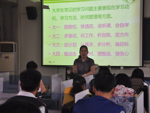 她讲到,作为班级导师,其工作对象分为集体与个人,两者关系相辅相成、密不可分,班集体的共同奋斗目标、强大凝聚力及稳定团结有利于个人发挥积极性与创造性,而个人主动参加班级活动则有利于班级营造积极活跃的氛围,形成良好的学习风气并带动集体更好地发展。因此,集体需要保持团结,个人需要自我管理,而如何发挥班委在集体中引导作用显得尤为重要。其次,作为班级导师要有明确详细的培养目标。班级导师针对不同专业、不同年级学生特点采取不同的管理办法,并在实施过程中不断调整工作计划,制定切实可行的学业目标,以鼓励学生充分利用时间,力争让大学生活充实而有意义。最后,她再次明确班级导师职责,提出导师应对学生进行思想、学业、职业规划等方面的指导,积极配合辅导员开展班级建设,适当开展心理健康教育工作。