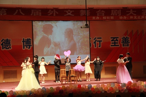 比赛在冒险王舞蹈联盟带来的劲爆舞蹈《小苹果》中拉开序幕。主持人对大赛评比规则进行简要介绍后,比赛正式开始。《白雪公主和七个小矮人》中,选手们将恶毒的王后、善良单纯的白雪公主、可爱的小矮人演绎得淋漓尽致,跌宕起伏的剧情赢得了观众们阵阵掌声。日语版《灰姑娘》另辟蹊径,用日语演绎英语经典童话,以庞大的表演队伍、美轮美奂的服装变换及流利的日语口语同样获得观众的好评。《夜莺与玫瑰》则讲述一只夜莺为爱牺牲的故事,演员们真情流露的表演深深地诠释了夜莺的深情及对爱情的无奈和向往,催人泪下,剧中穿插应景的歌舞表演,令剧情及主人公更加丰满而真实。由国际教育学院的留学生们带来的《留学生在中国的故事》将观众从凄美的故事中走出,轻松的气氛、激情的舞蹈、变幻的场景,他们用一个个留学生在中国生活的故事展现出生活中的酸甜苦辣,同时诠释着他们对中国的理解与喜爱。另外,英文版《灰姑娘》、《睡美人》也亮相舞台。