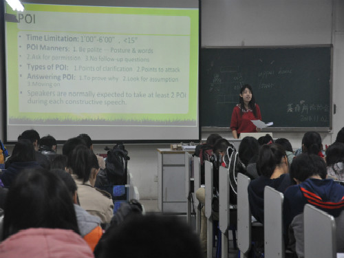 11月2日晚,英语辩论协会于在8号楼216教室举行第18届“外研社京东杯”全国英语辩论大赛赛前培训。我院优秀学生姚梦茜作为主讲人对参赛者进行赛前培训。参赛者积极参与,现场座无虚席。
