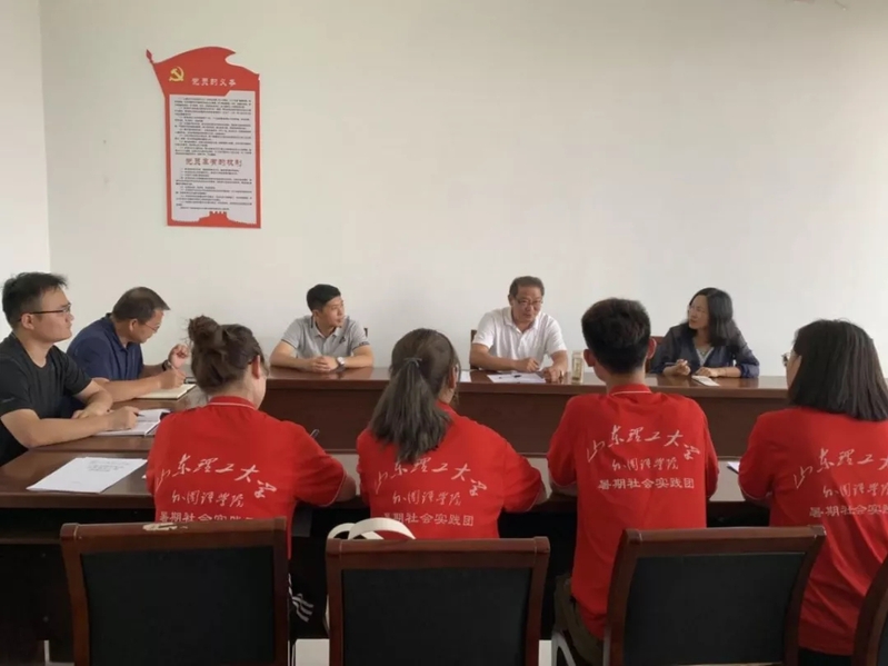 图为山东省派蒙阴县乡村振兴服务队队长、省教育厅(省委教育工委)二级巡视员刘欣堂一行出席我院“蒲公英”社会实践团工作汇报会并指导工作