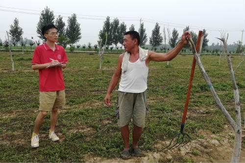 在与这几位劳动者交流的过程中,萤火之行的几位成员了解到房家村的干部于4年之前开始对房家村的农户们拥有的小微农田进行统计、合理整合和承包分配,并于2017年成立了乐陵市花园镇房家村合作基地股份有限公司开始具体的生产,参与此项目的农户们大多被分配到种植基地和位于种植基地旁的一家服装厂参与工作。相比于从前农户对自家所拥有的小微土地负责,他们认为村里整合零散土地资源进行外包的模式更为便捷、稳定。此外,成员们还对种植基地的工作时间和工资等具体事项进行了一系列咨询,大部分农户对目前的情况感到满意且愿意继续服从房家村村委会的安排进行生产,参与房家村的经济建设。