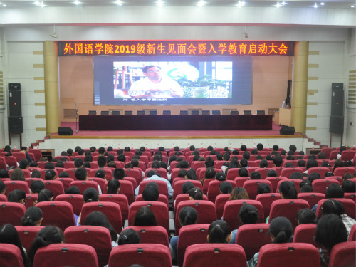 大会开始,院长王明新发表讲话。他首先对进入学院学习的2019级新生表示欢迎,并对学院建设和专业发展等情况进行介绍。他指出,作为新一届外院人,学生要充分领会学院“内外兼修 中西贯通”的精神内涵,追求知识、能力、素质、人格并重,争做“五有”外院人。他对全体新生提出三点要求:一是要心怀祖国,爱家爱国。牢固树立民族自豪感和文化自信心,自觉地将“小我”融入“大我”之中,把激昂的青春梦融入伟大的中国梦。二是要勤奋好学,博闻强识。在学好专业的基础上广泛学习,不断提升自身的人文素养和思维品质。三是格物致知,知行合一。积极投身社会实践,在创新中培养合作精神和解决实际问题的能力,在文化互鉴中培养包容的时代情怀、形成开阔的国际视野。