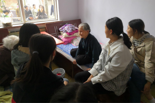 下午一点十分,党员于学校北门集合,经过十分钟的路程,顺利到达松鹤林敬老院。按照预先安排,党员们分批进入松鹤林敬老院。活动中,党员们不怕脏不怕累,在敬老院领导和工作人员的安排下,分组对敬老院的院落、窗户、大厅等进行了认真彻底的卫生清扫,为老人们营造出舒适温馨的生活环境。随后,学生党员们走进老人的房间,学生党员们或蹲或坐在老人身边,关心老人们的健康状况、与老人分享生活中的欢乐。其中一位老爷爷已经离开自己的儿女在敬老院住了好多年了,热切地与学生党员交谈。老爷爷说道:自己很高兴看到学生们不定期地来这里看他们,陪他们聊天说话,给他们唱歌表演才艺;老爷爷也向学生党员们讲述了自己所经历过的一些往事,不禁感慨地说:“如今祖国经济飞速发展,都要感谢改革开放的好政策,我们才能过上现在的好日子,并嘱咐党员要不忘初心,努力奋斗,去创造更加幸福美好的未来。