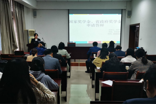 会议伊始,周丽妲从国家奖学金、省政府奖学金的评选标准、评审流程与名额分配等方面进行简要介绍。随后,候选人按照顺序依次进行答辩。
